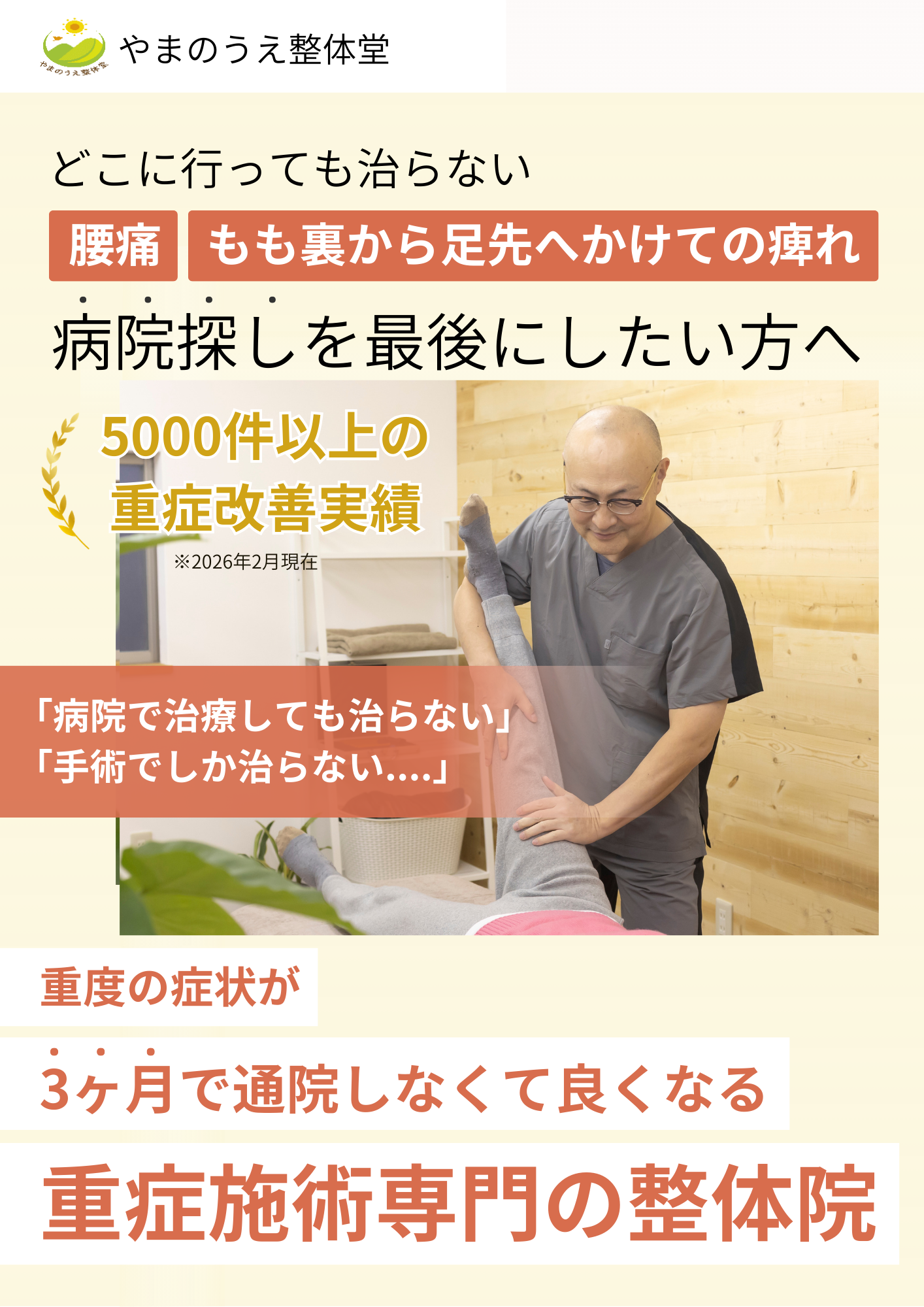 坐骨神経痛が原因で2回も腰の手術をしたのに、痛みと痺れが取れず悩んでいたところ、山上先生に助けてもらいました。