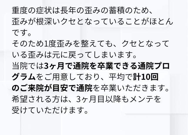手術か車イスかと整形の先生に言われたことをきっかけに、ここでお世話になっています。