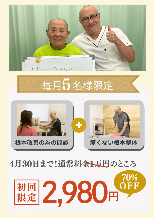 いろんな整骨院や病院に行ったのにどんどん酷くなり、10m歩くのも精一杯でした。