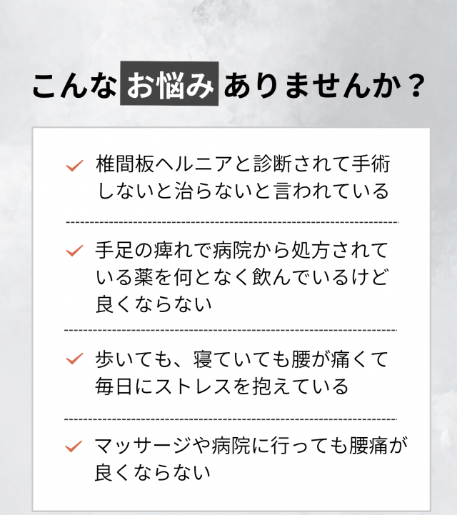 手術でも取れなかった坐骨神経痛の痛み・痺れが改善しました